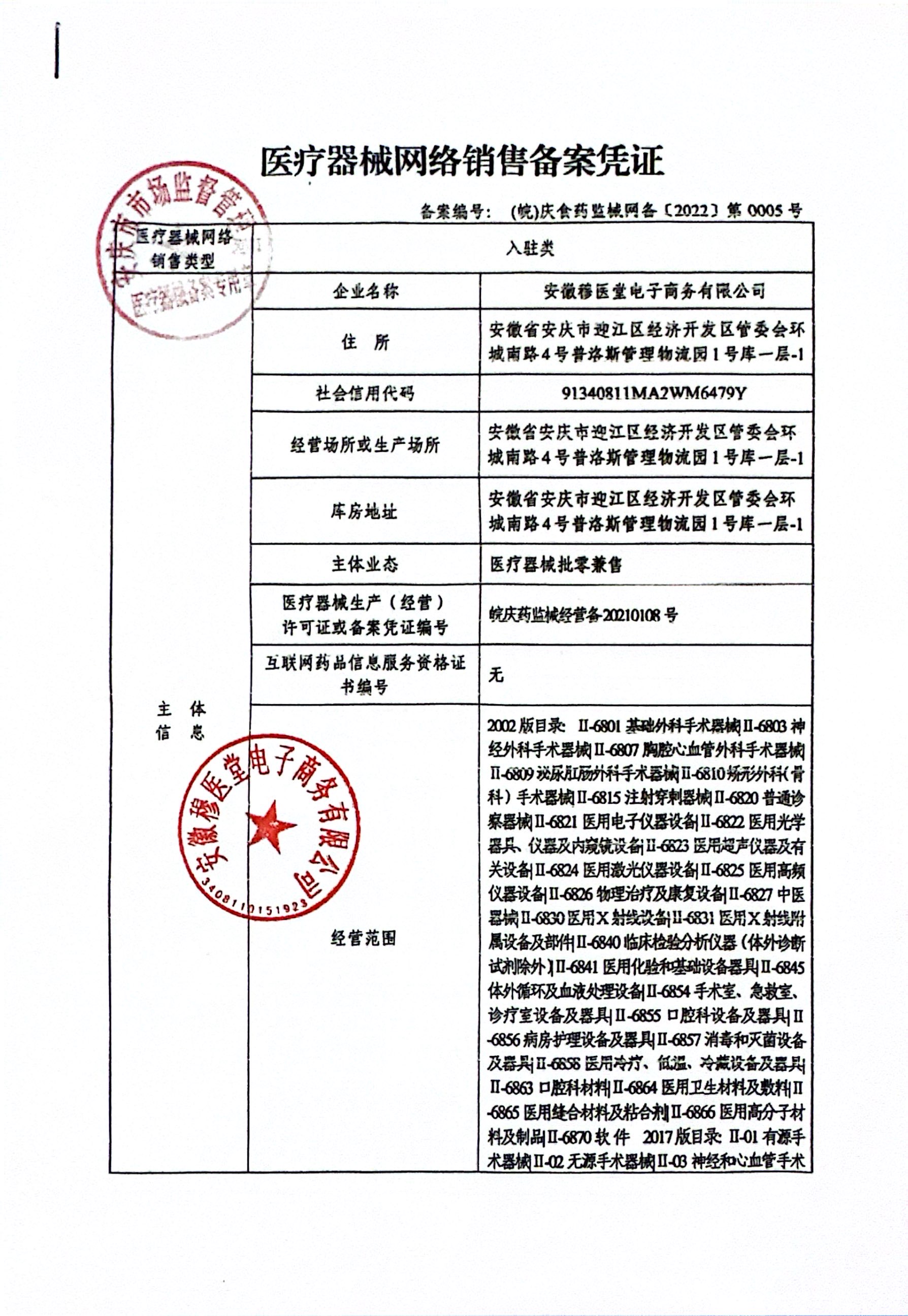 公司以授權品牌“穆一堂”,已經在淘寶、京東、拼多多、百度健康商城、快手、美團等多個主流電商平臺開通店鋪,公司運營資質產全,獲得了:醫療器械經營備案憑證、醫療器械網絡經營備案、食品經營許可證、互聯網醫療器械信息服務資格證、商標授權等資質。經營品類涵蓋了前列腺系列醫療器械,如凝膠、栓劑、膏貼等,還新推出了男科、婦科健康產品,以多品類產業格局,構建此類用戶一站式健康服務業體系。